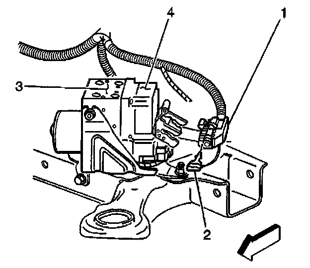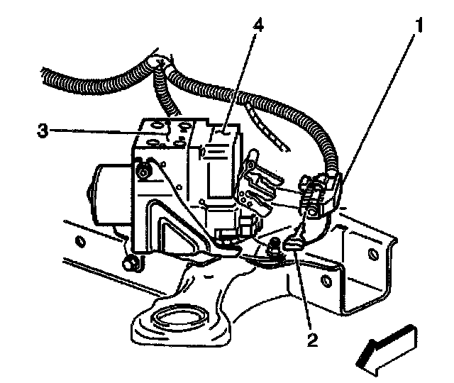 7. Remove the EBCM electrical connector (1) from the EBCM (4).