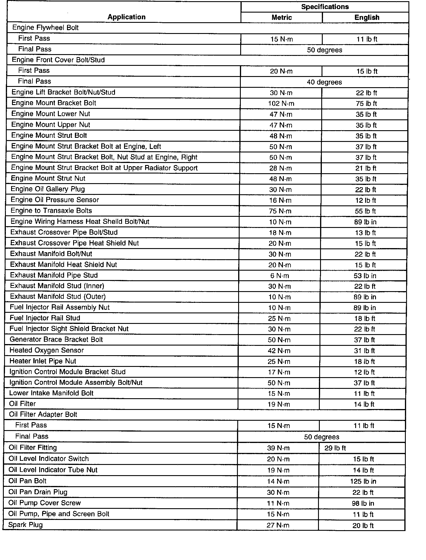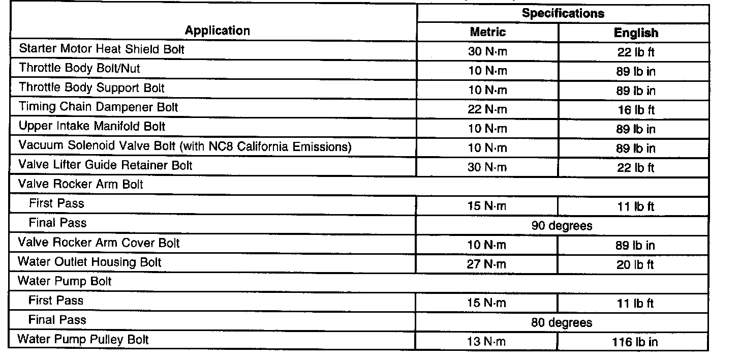 Fastener Tightening Specifications