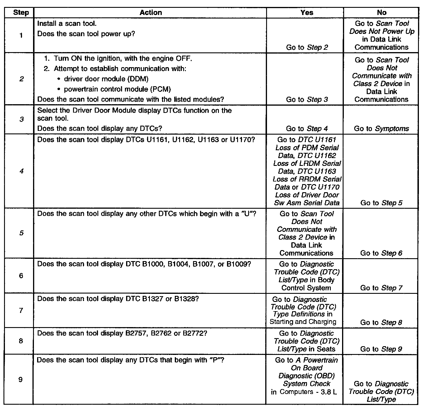 2. Lack of communication may be due to a partial malfunction of the class 2 serial data circuit or due to a total malfunction of the class 2 serial data circuit. The specified procedure will determine the particular condition.