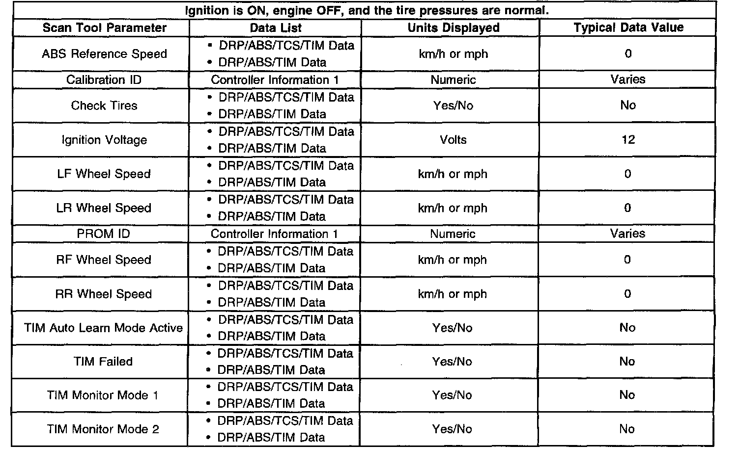 Scan Tool Data List