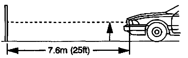 The area should consist of a level surface large enough to allow for a vehicle and an additional 7.62 m (25 ft) as measured from the face of the headlamps to the aiming screen.