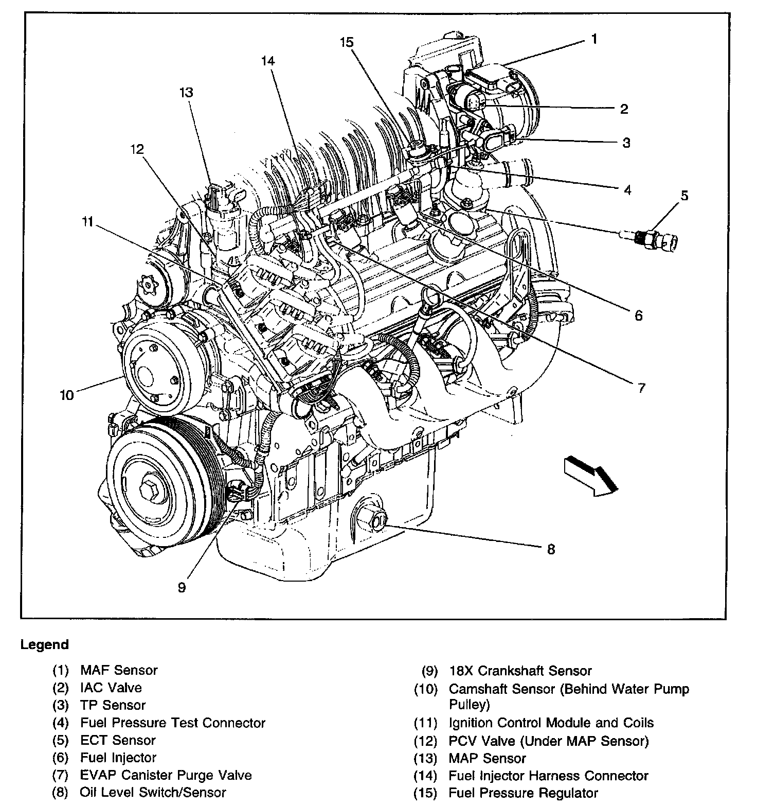 Top left front of the engine assembly