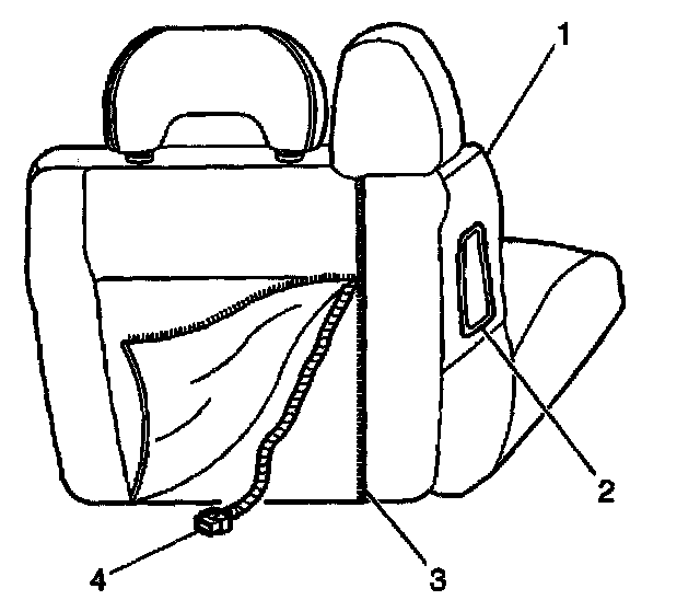 3. With seat zipper (3) in the open position the inflatable restraint side impact inflator module wiring harness (4) will be exposed.