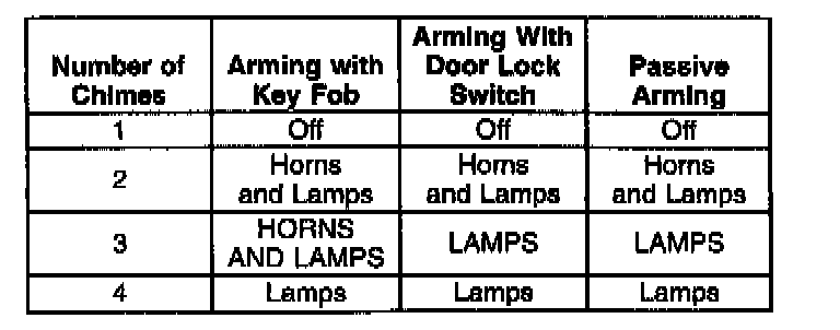 Theft Deterrent Arming Verification (Horn Chirp and Parking LPS Flash)Available on vehicles equipped with Universal Theft Deterrent (UTD) system, this feature provides horn chirps and/or parking lamp illumination to indicate when the UTD system has been armed. It is programmed separately from the remote lock control verification list above.