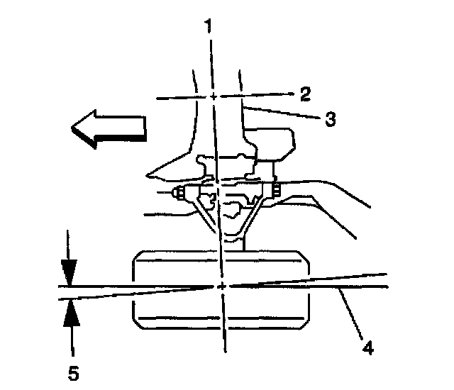 Toe measures the amount in which the front tires and wheels are turned in or out (5) from a straight-ahead position (4). When the tires and the wheels are turned in, toe is positive (+). When the tires and the wheels are turned out, toe is negative (-). the actual amount of toe is normally only a fraction of a degree. The purpose of toe is to ensure that the tires and the wheels roll parallel by compensating the slight tolerances that exist within the suspension components.
