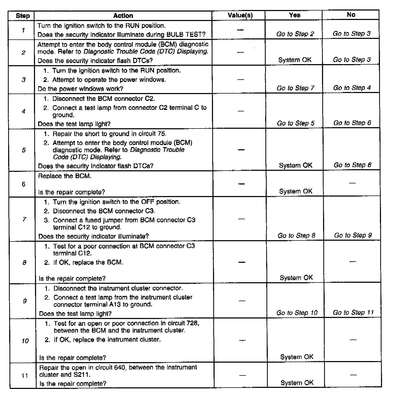 The BCM also uses the SECURITY indicator lamp in order to display the DTC flash codes by grounding CKT 728.