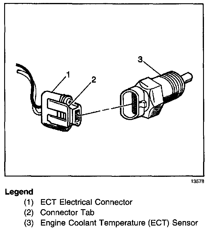 The PCM supplies a 5.0 Volt signal to the engine coolant temperature sensor through a resistor in the PCM and measures the voltage. The voltage will be high when the engine is cold. The voltage will be low when the engine is hot. The PCM calculates the engine coolant temperature by measuring the voltage. The engine coolant temperature affects most Systems the PCM controls.