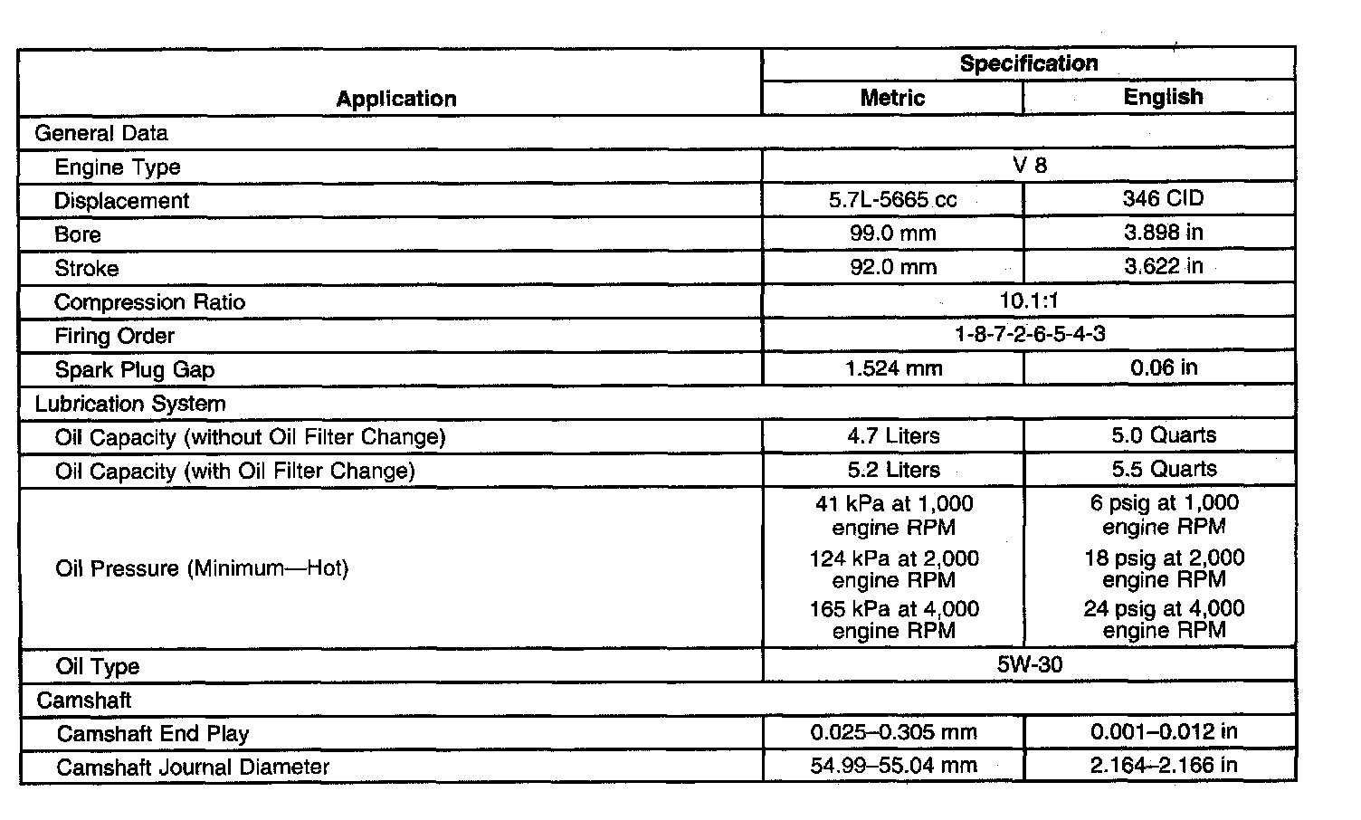 Engine Mechanical Specifications