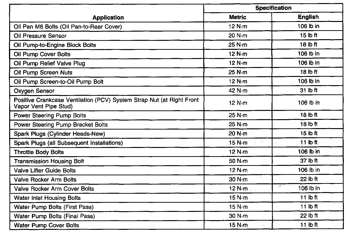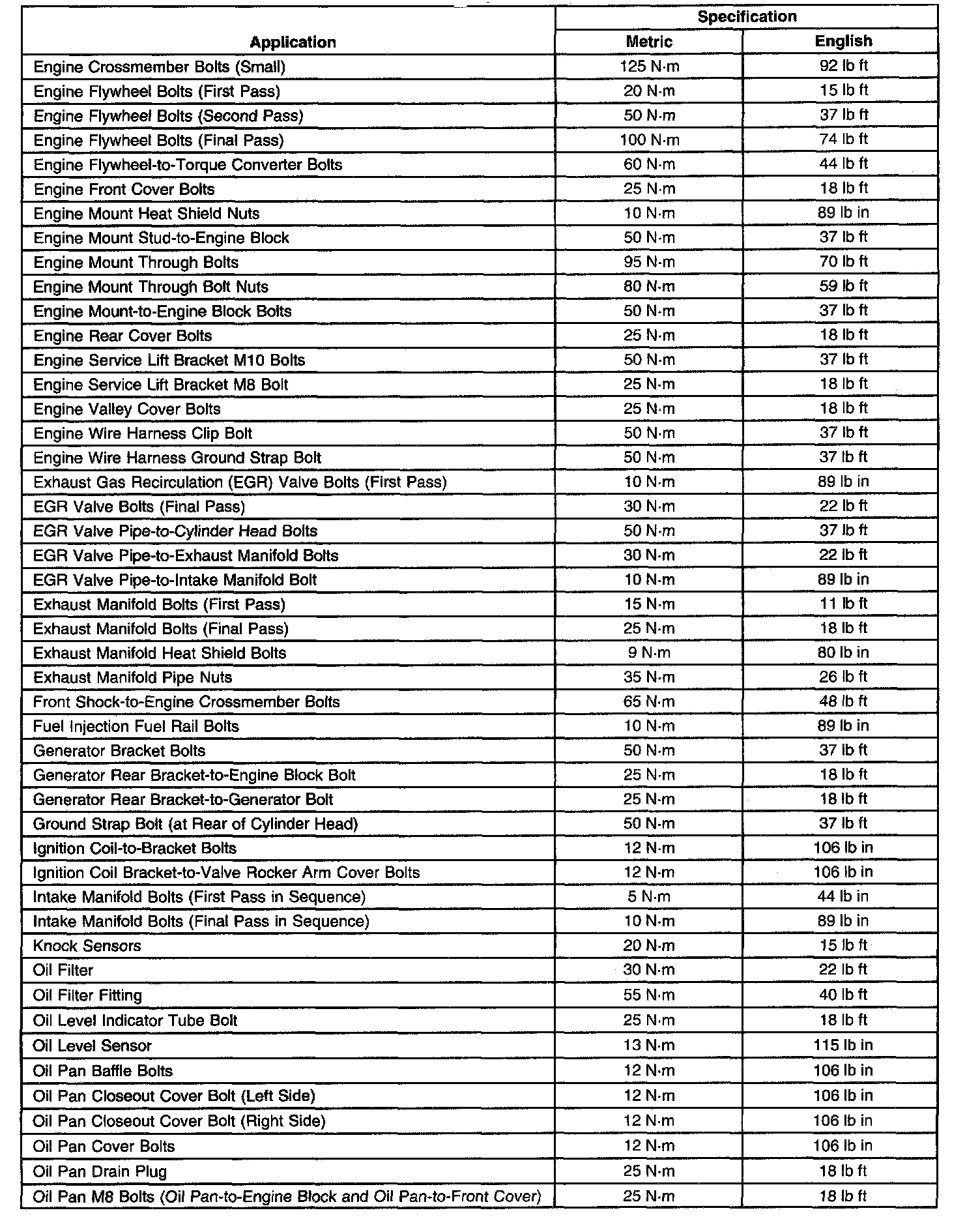 Fastener Tightening Specifications