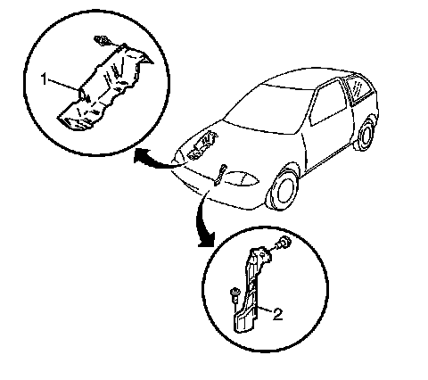 2. Remove the engine splash shield (1) from the vehicle by removing the 6 plastic retainers.
