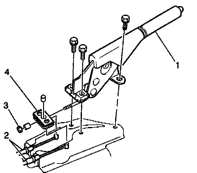 The equalizer (4) attaches to the other end of the connecting rod. The equalizer applies equal force to both of the park brake cables (2).