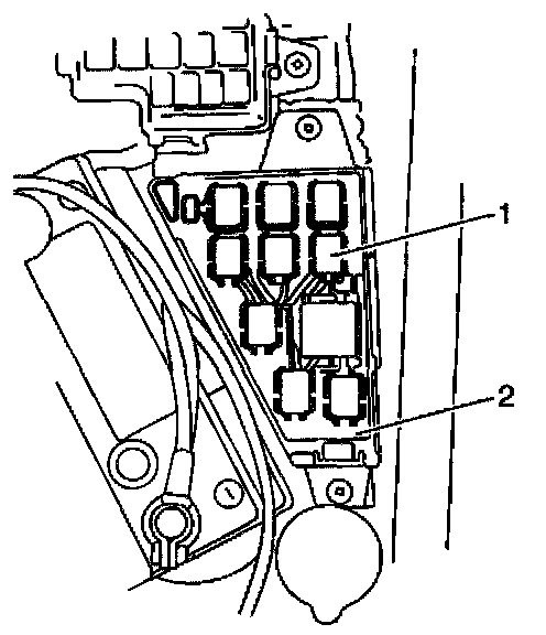 1. Install the main relay (1) into the relay box (2).
