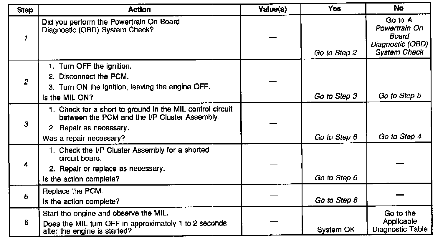 2. This step checks for a short to ground in MIL control circuit.