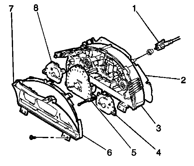 4. Remove the speedometer gauge (5) from the cluster housing (3).