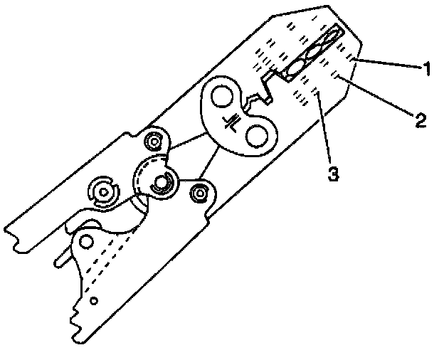 7. Place the splice sleeve in the nest. Ensure that the crimp falls midway between the end of the barrel and the stop. The sleeve has a stop (3) in the middle of the barrel (2) in order to prevent the wire (1) from going further. Close the hand crimper handles slightly in order to firmly hold the splice sleeve in the proper nest.