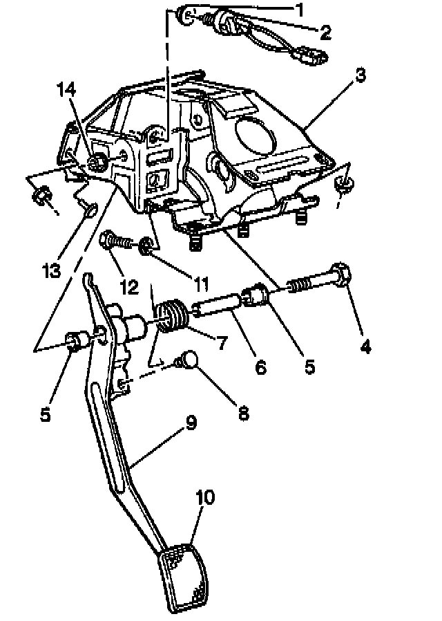 5. Remove the clutch pedal assembly from the clutch and from the brake pedal bracket.