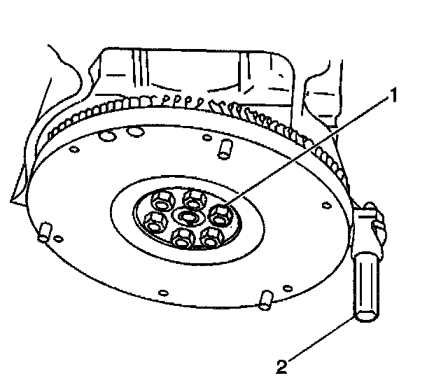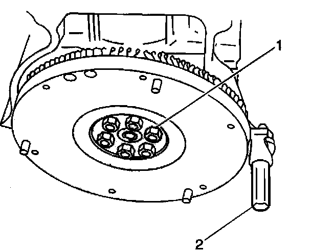 4. Apply GM P/N 12345493 or equivalent, to the flywheel retaining bolt threads.