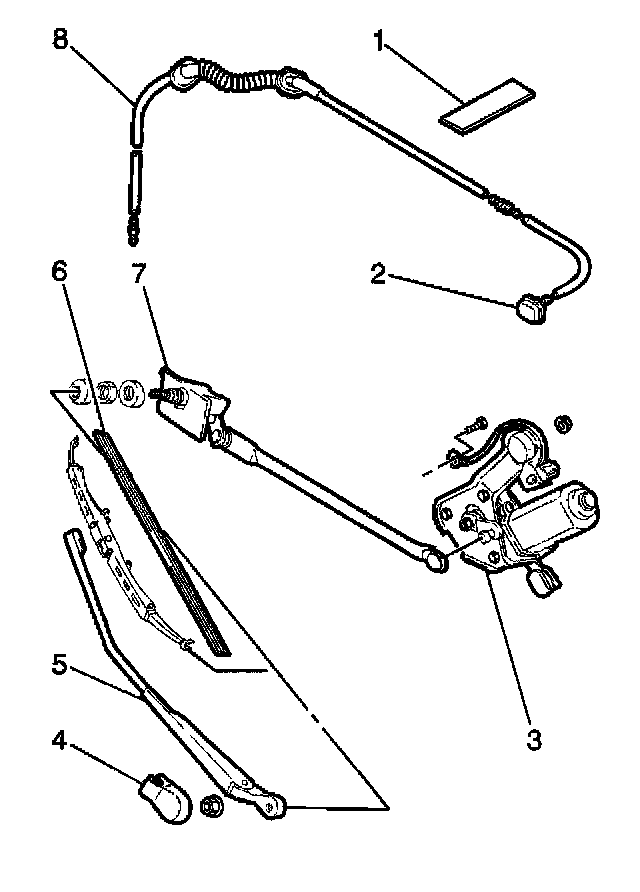 1. Install the wiper arm (5) to the wiper linkage (7). Secure the wiper arm with the retaining nut.