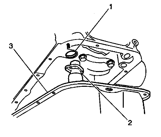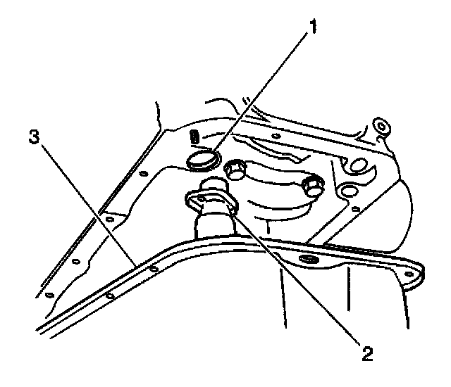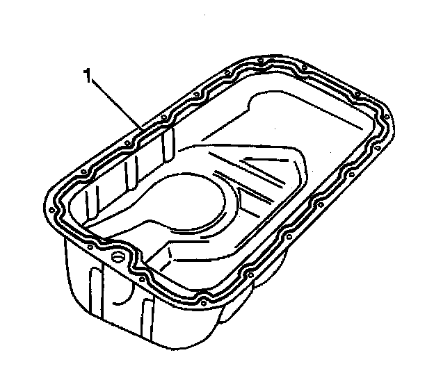 2. Apply a continuous bead of silicon sealant GM P/N 12346240 or of an equivalent to the mating surface of the engine oil pan (1).