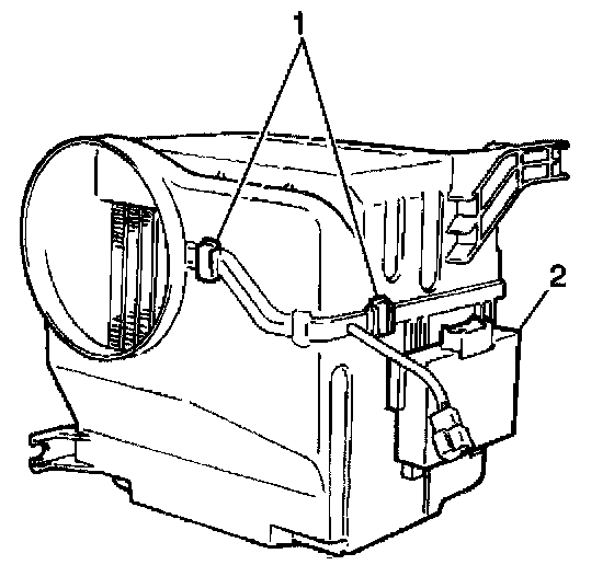 1. Remove the A/C compressor control module (2) from the evaporator case by performing the following actions: