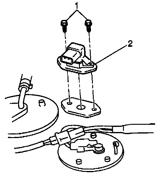 3. Remove the 2 bolts (1) from the fuel tank pressure sensor.