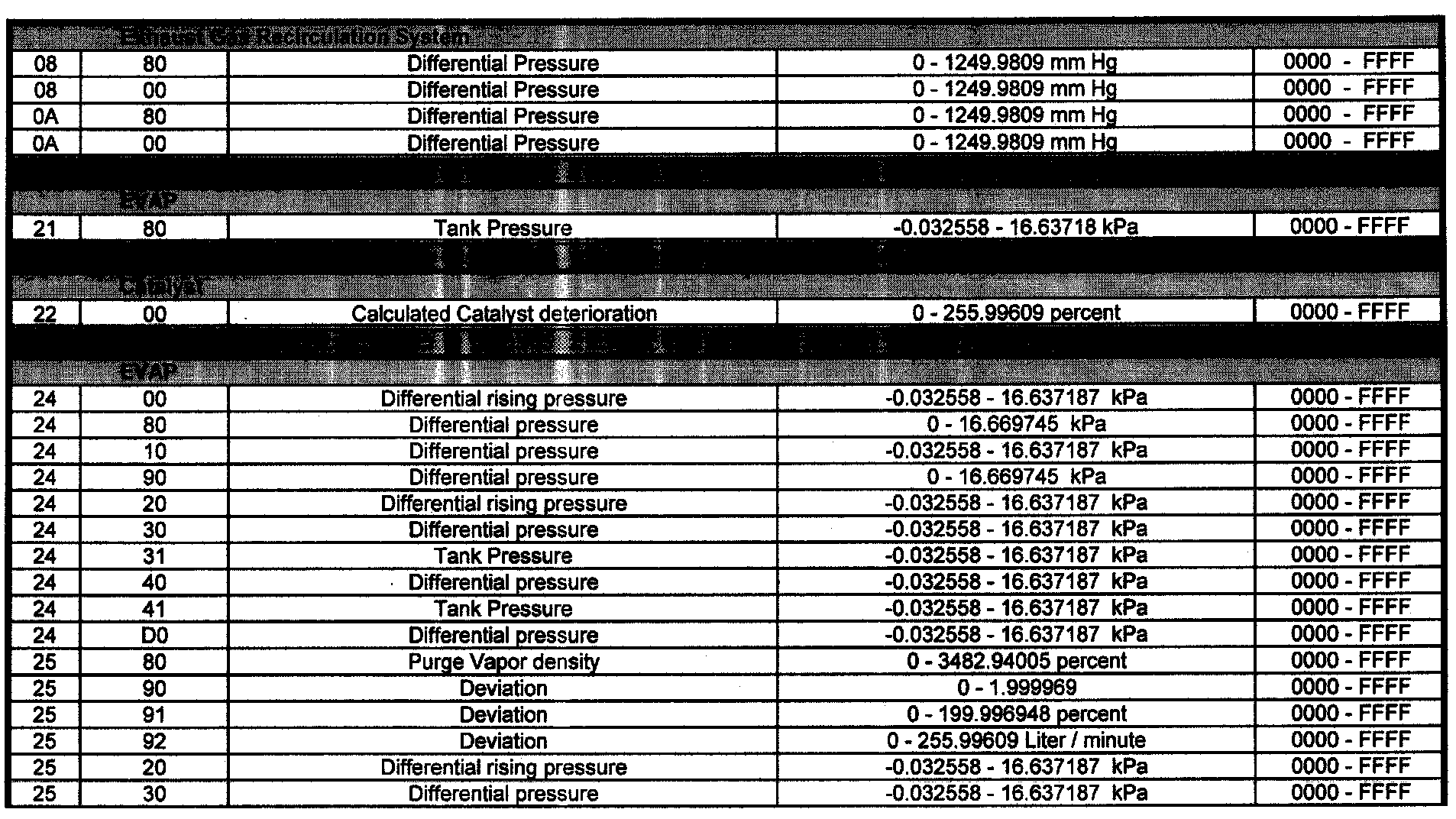 1999-2004 Chevrolet Metro/Tracker Mode 6 Data Description Page 11: