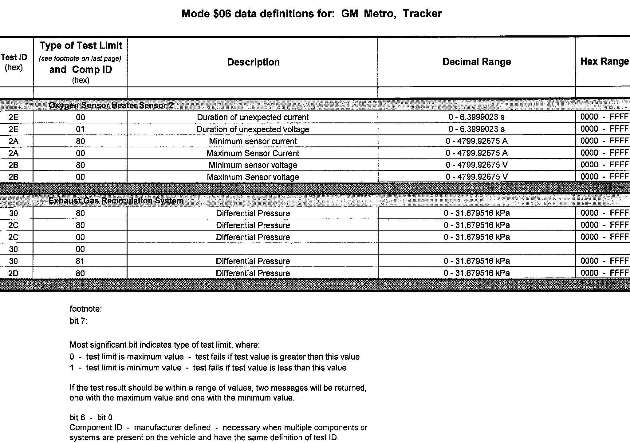 1999-2004 Chevrolet Metro/Tracker Mode 6 Data Description Page 1: