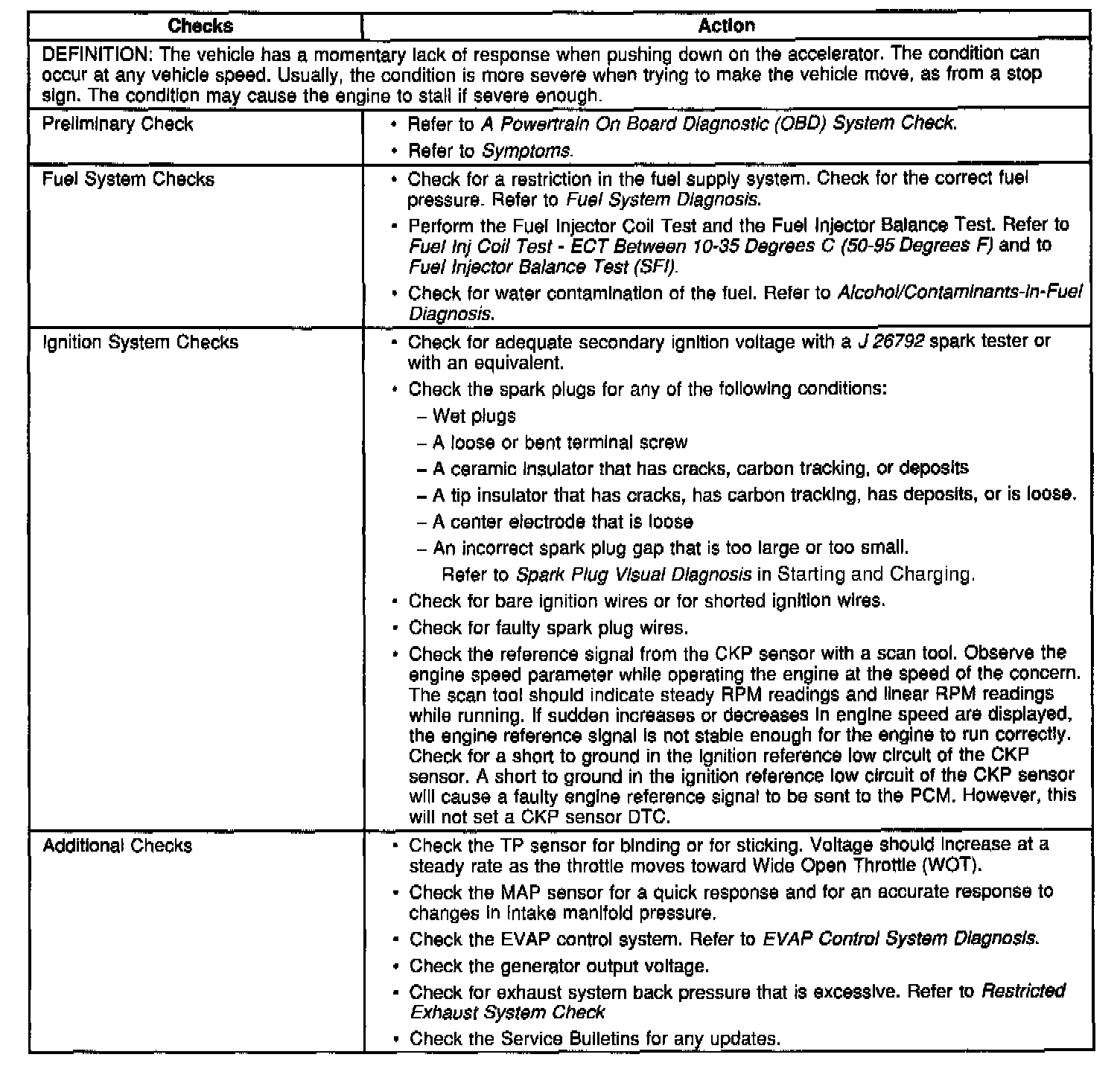 Hesitation, Sag or Stumble