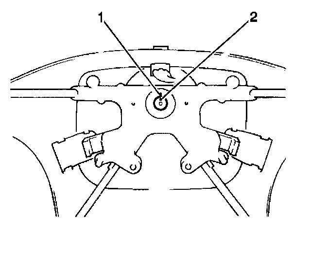 5. Use paint in order to mark the alignment of the steering wheel (1) to the steering shaft (2). During installation, use these marks as a guide.
