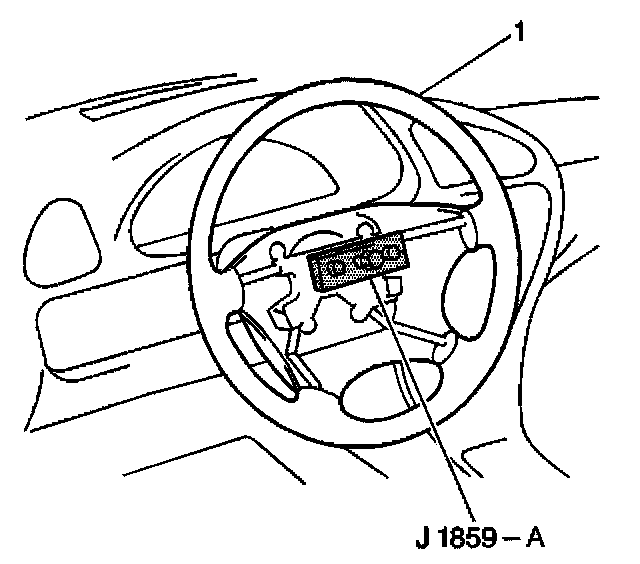 6. Install the J 1859-A to the steering wheel (1).