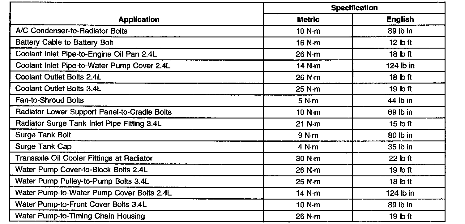 Fastener Tightening Specifications