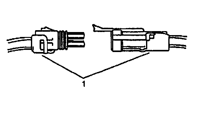 ^ Insert the Weather Pack(R) terminal removal tool into the front (mating end) of the connector cavity until it rests on the cavity shoulder (1).