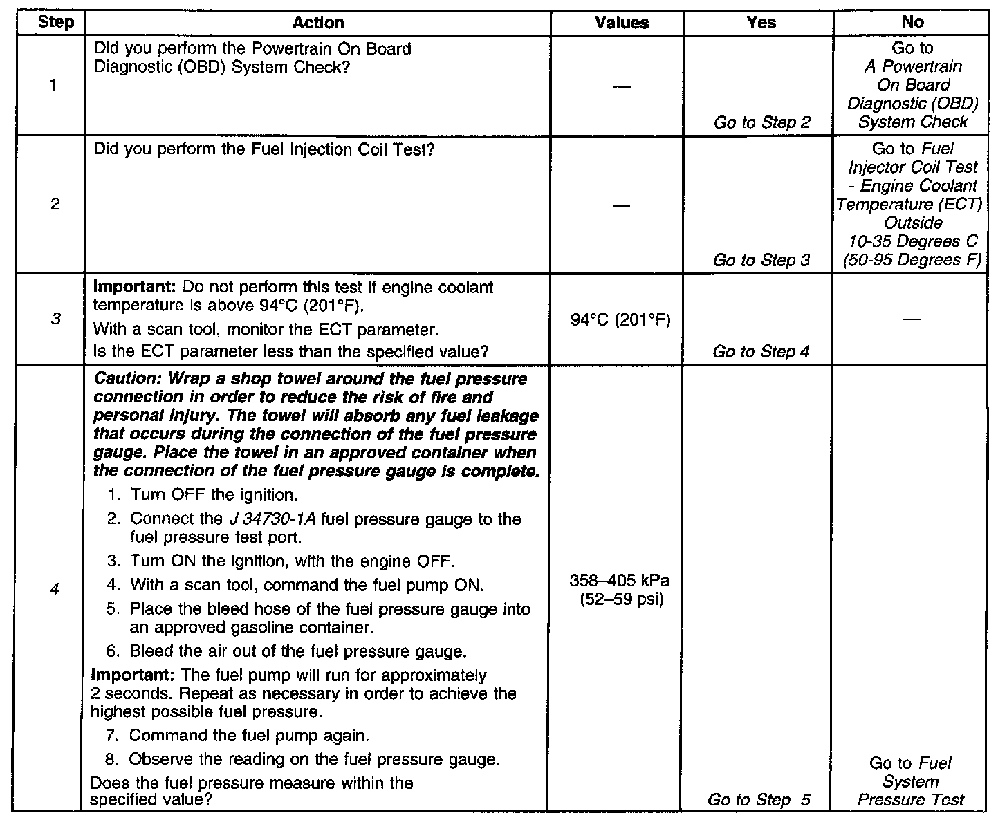 4. This step tests the ability to achieve a specified fuel pressure range.