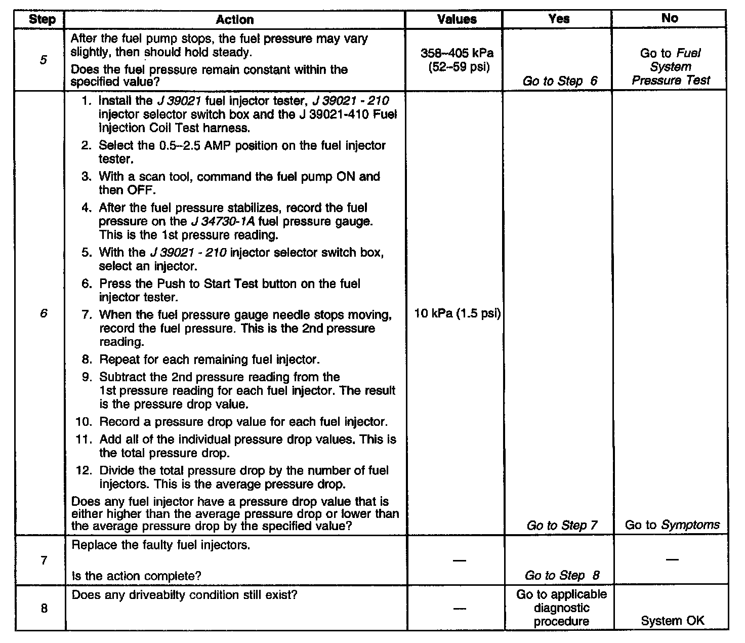 5. This step tests the ability to maintain a steady fuel pressure value.