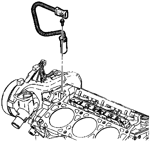 The camshaft position sensor is located on the timing cover behind the water pump near the camshaft sprocket. As the camshaft sprocket turns, a magnet in it activates the Hall-Effect switch in the camshaft position sensor. When the Hall-Effect switch is activated, it grounds the signal line to the PCM, pulling the camshaft position sensor signal circuit's applied voltage low. This is interpreted as a CAM signal.