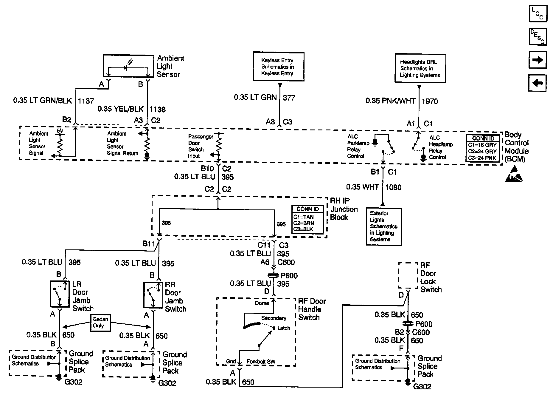Body Control Module Schematics: Ambient Light Sensor, ALC Relay Control, Right Rear, Left Rear, And Right Front Door Jamb Switches: