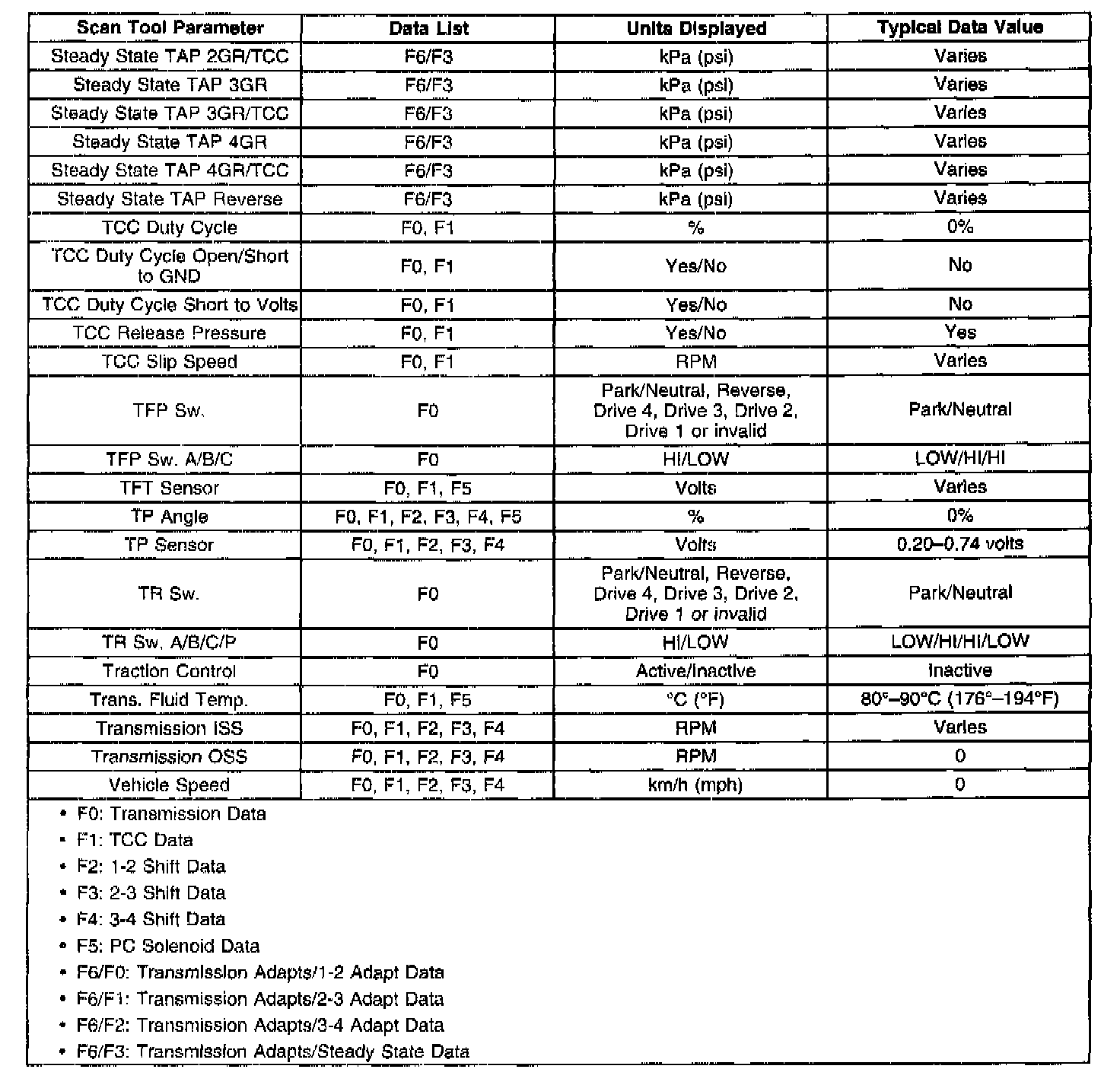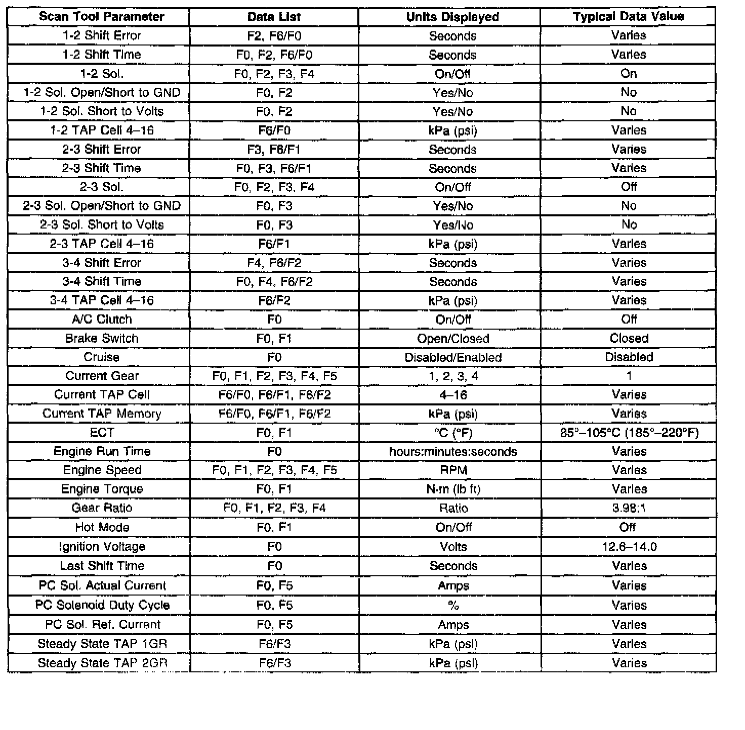 Transmission Scan Tool Data List