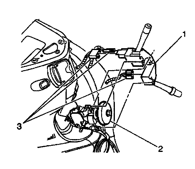 4. Disconnect the electrical connectors (3) from the multifunction switch (1).