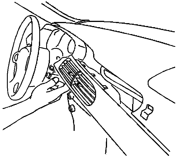 9. Through the center air outlet opening in the IP, remove the remaining two 7 mm hex head screws that attach the hazard warning switch to the IP.