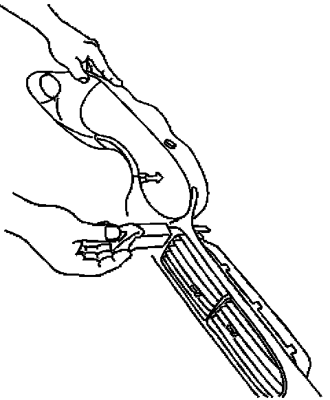 Both retainers must be released at the same time in order to remove the air outlet in the next step.