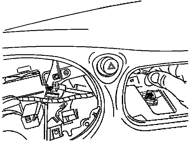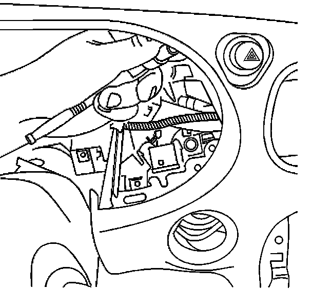 8. Through the instrument cluster opening in the IP, remove one of the three 7 mm hex head screws that attach the hazard warning switch to the IP.