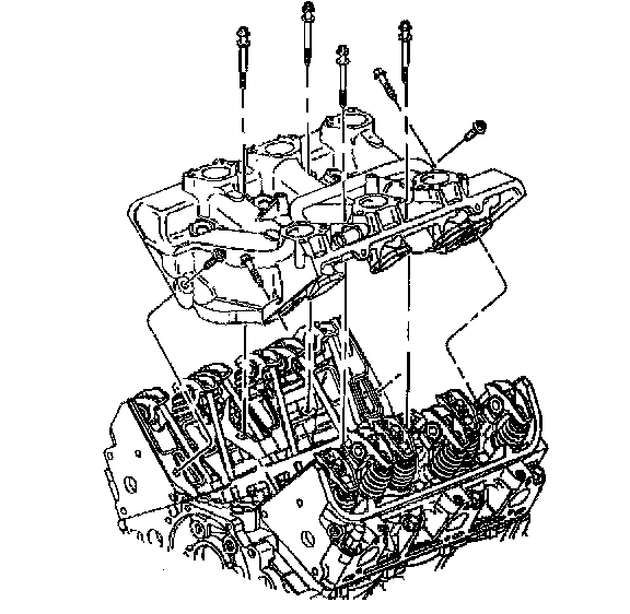 11. Hand tighten the diagonal lower intake manifold bolts.