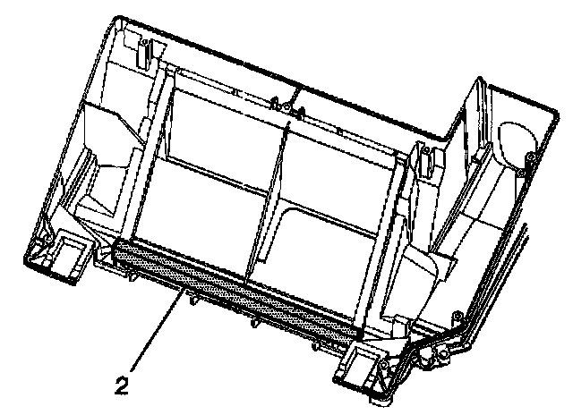 19. Remove and discard the heater core upper seal (2) from the HVAC lower case.