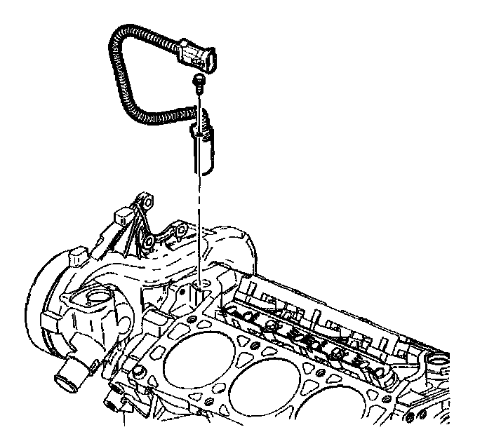 The camshaft position sensor is located on the timing cover behind the water pump near the camshaft sprocket. As the camshaft sprocket turns, a magnet in it activates the Hall-effect switch in the camshaft position sensor. When the Hall-effect switch is activated, it grounds the signal line to the PCM, pulling the camshaft position sensor signal circuit's applied voltage low. This is interpreted as a CAM signal.
