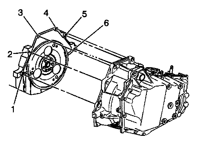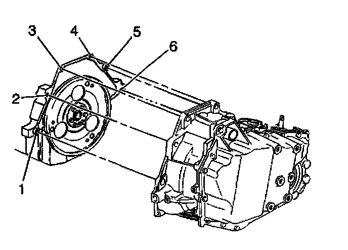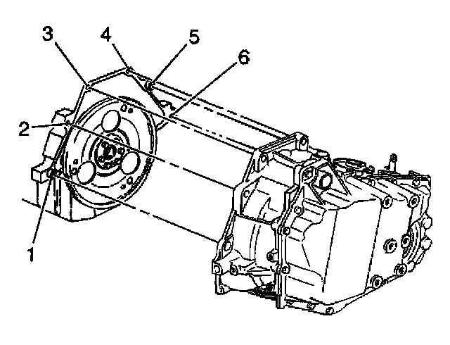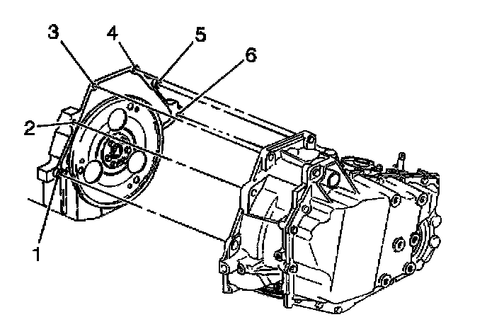 4. Install the lower transaxle bolt (6) and stud (1).