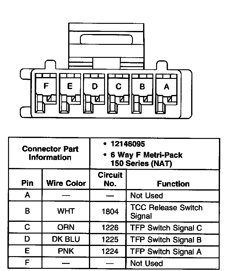 Automatic Transmission Fluid Pressure Manual Valve Position Switch Connector, Wiring Harness Side