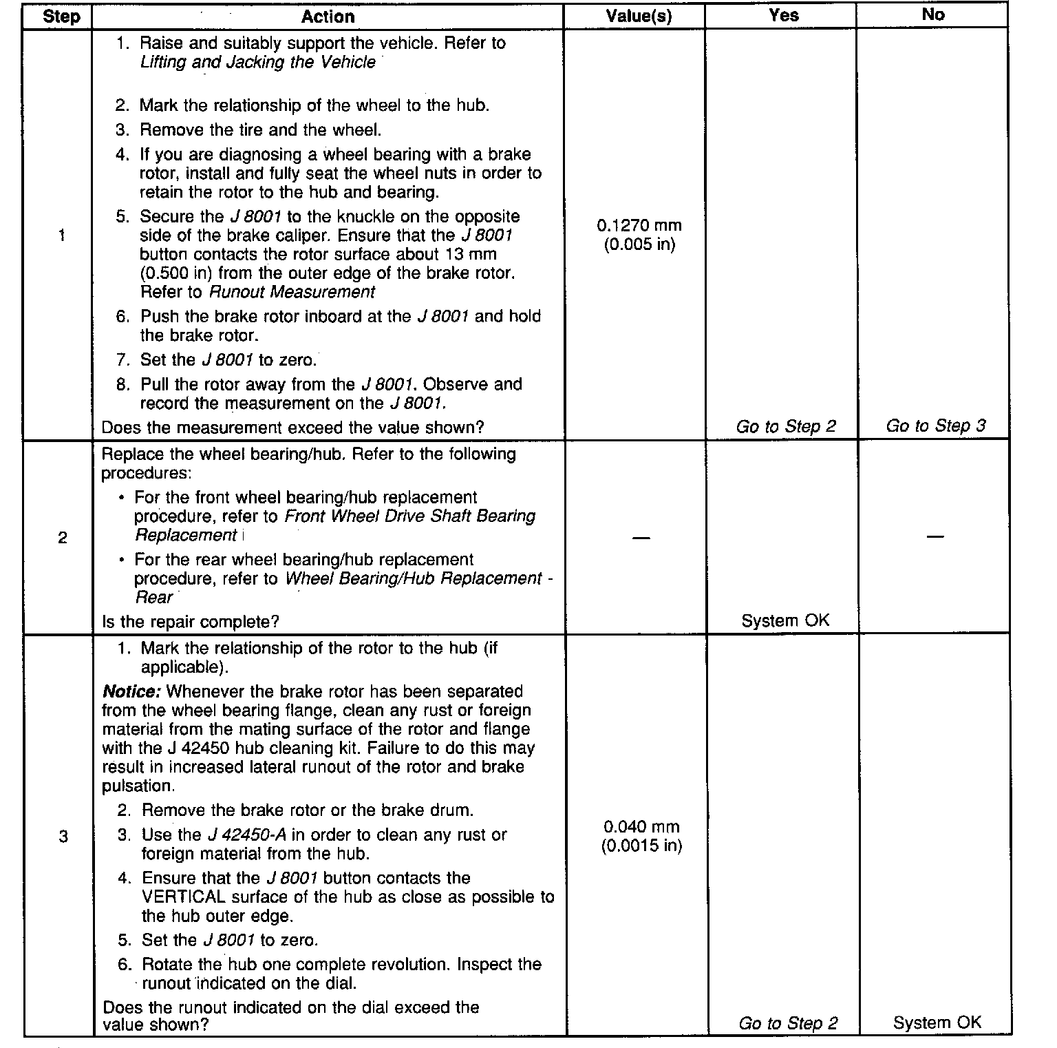 Bearing/Hub Looseness and Lateral Runout