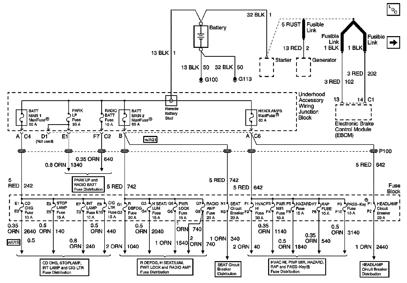 Battery, Starter, Generator, EBCM, Underhood Accessory Wiring Junction Block and Fuse Block