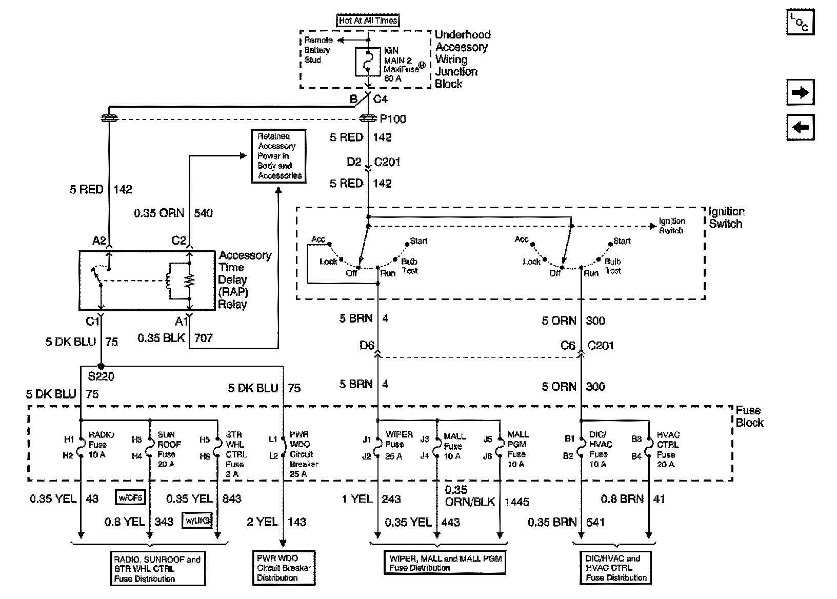 Ignition Switch, RAP Relay, Underhood Accessory Wiring Junction Block and Fuse Block