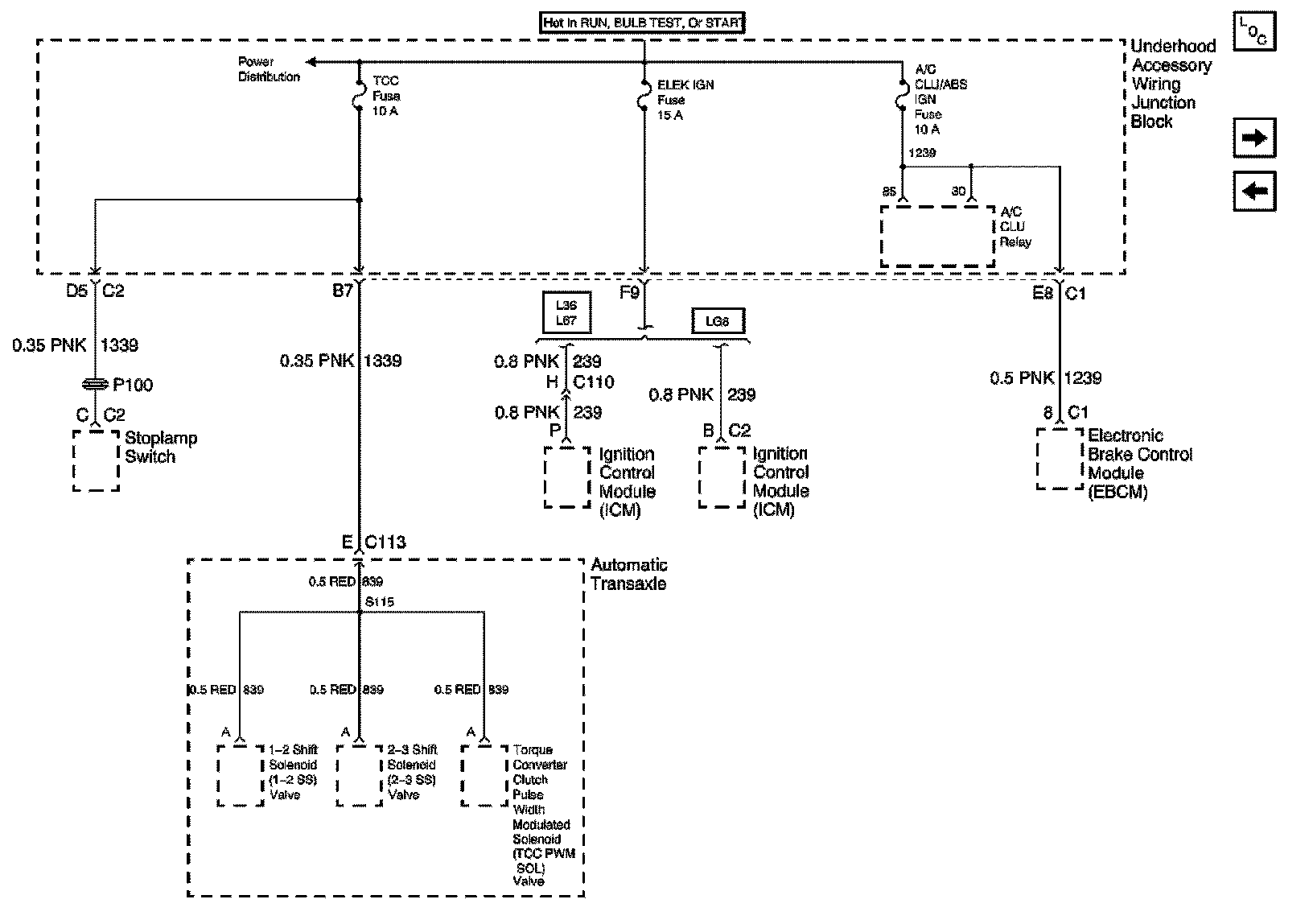 Underhood Accessory Wiring Junction Block, ICM, Automatic Transaxle, Stop Lamp Switch and EBCM